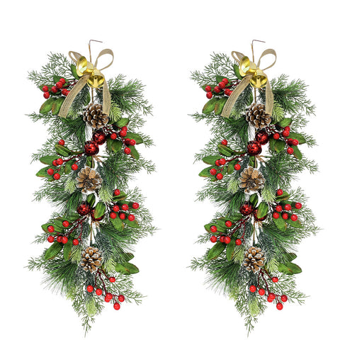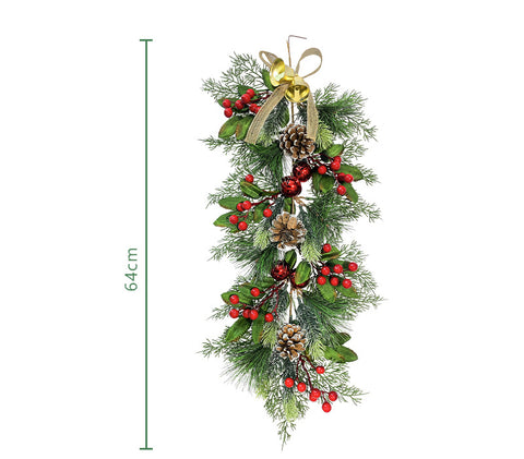 Simulation pine needle wall hanging Christmas bells colourful ball holiday atmosphere decoration artificial pine needle wall hanging