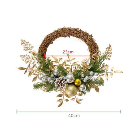 Simulation Pine Needles Rattan Christmas Gold Coloured Ball Leaves Pine Cones Indoor Fireplace Wall Hanging Decoration
