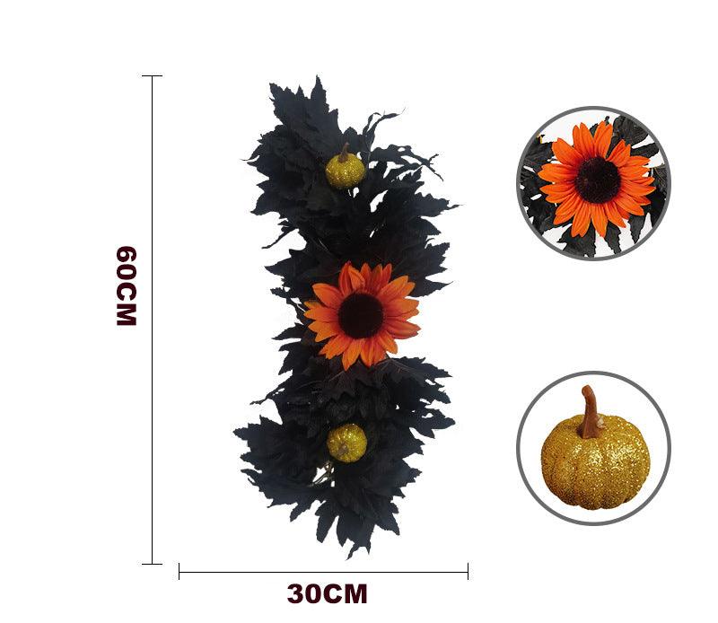Simulated Halloween door decoration with black maple leaf wall hanging