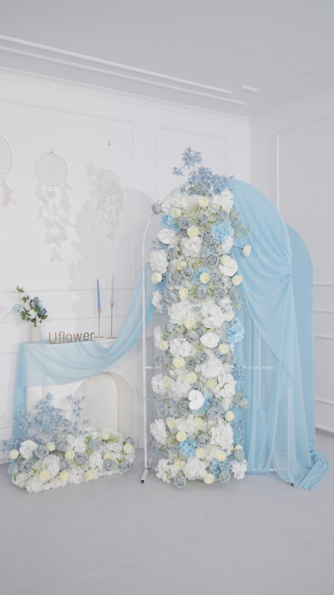 Uflower Blue White Flower Wedding Backdrop Arch Floral Arrangement