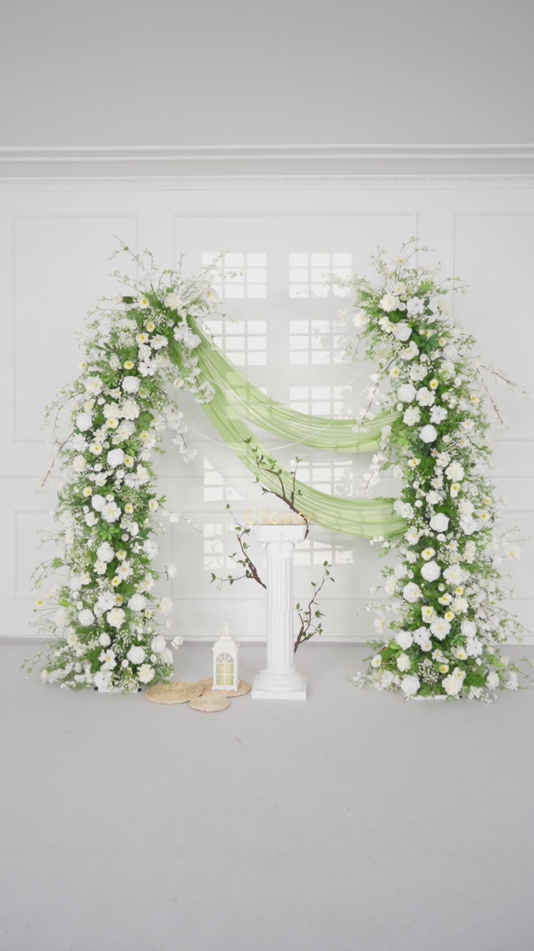 Uflower Green White Floral Horn Arch Wedding Party Backdrop Decor