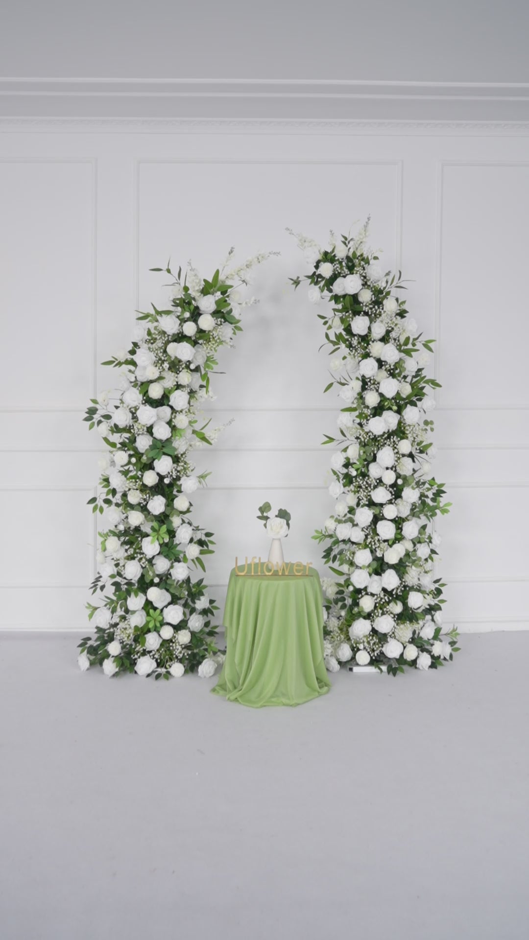 Uflower White Green Rose Floral Arch Wedding Backdrop Decor
