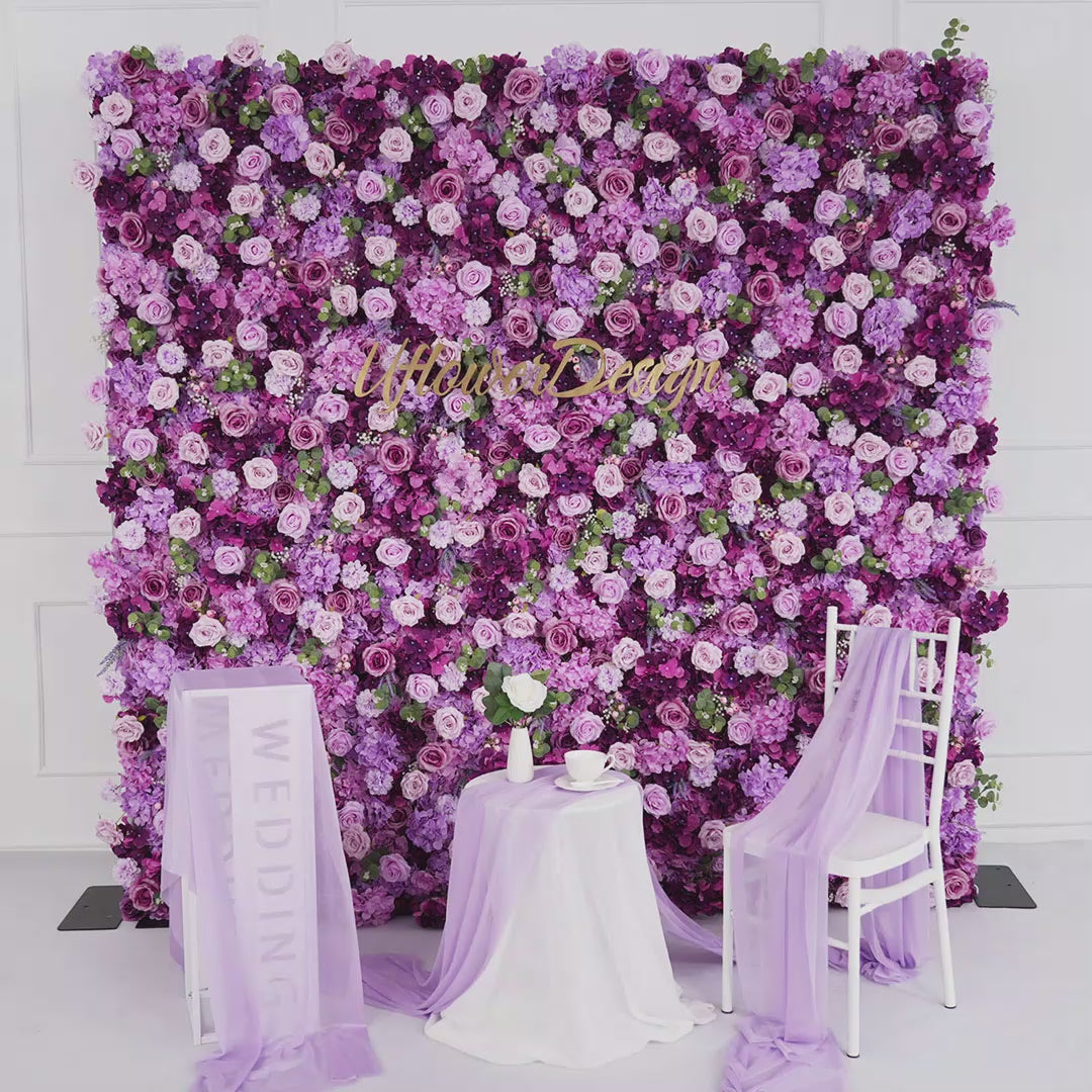 Artificial Luxury 5D Purple Rose Hydrangea Mixed Flower Wall