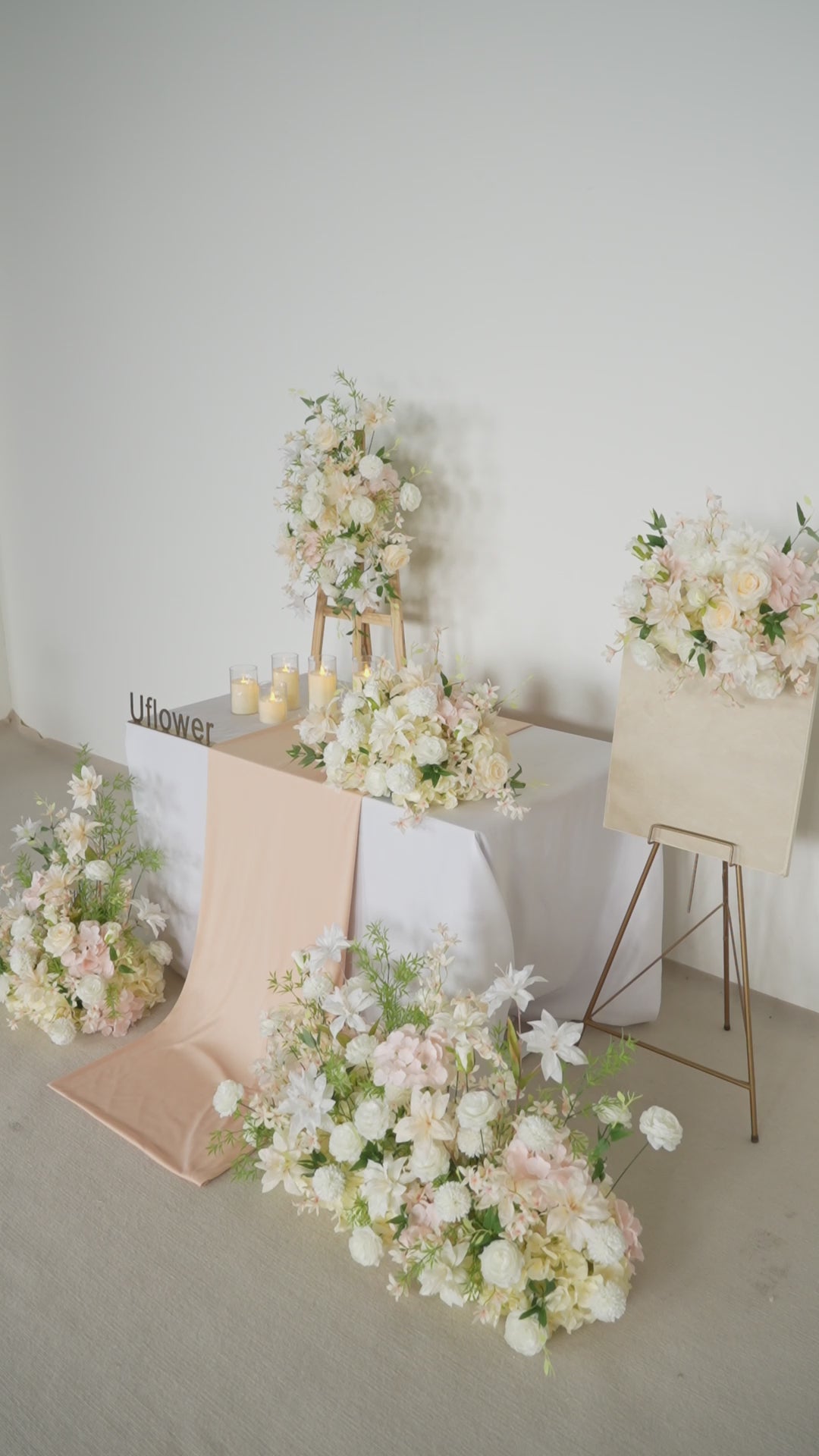 Uflower Artificial White Pink Wedding KT Backdrop Flower Row Decor