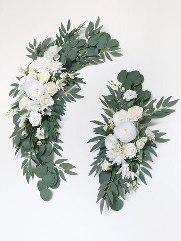 Bohemian White Rose Wedding Arch Hanging Corner Floral Decor