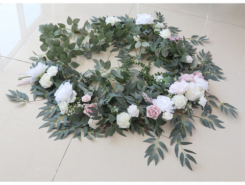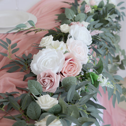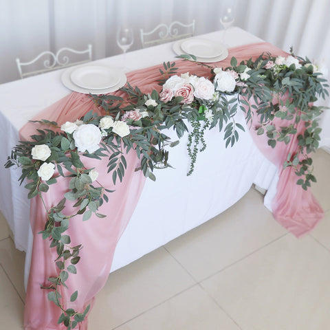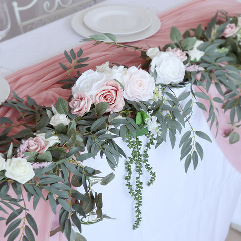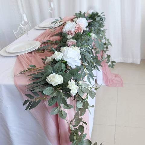 Long shallow lotus root powder white rose vine wedding simulation table flower decoration