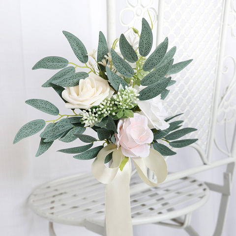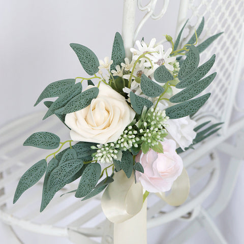 Simulated Huasen Series Outdoor Wedding Rose Willow Leaf Small Flower Bundle Chair Back Flower Decoration