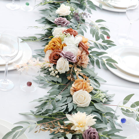 Simulated Rose Strip Dirty Orange Table Flower Outdoor Wedding Decoration Background