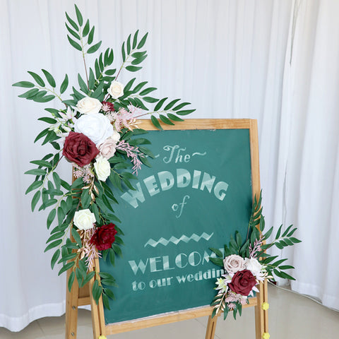 Simulated White Wine Red Rose Silk Flower Wedding Welcome Sign Flower Art Guide Sign Props