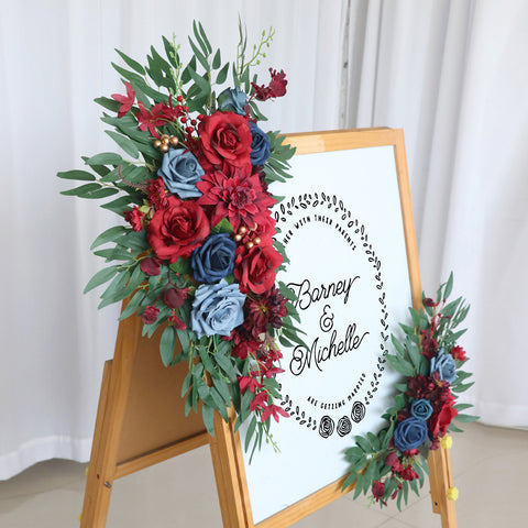 Simulated Wine Red Royal Blue Rose Art Wedding Welcome Sign Decorative Corner Flower Prop