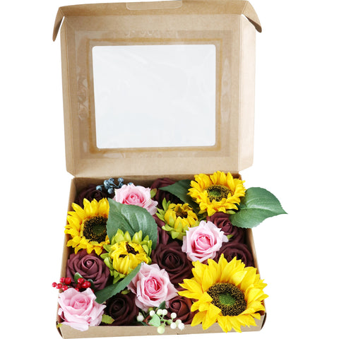 Simulation Flower Box Wedding, Birthday, Valentine's Day Gift Box with Pole Flower Head DIY Home