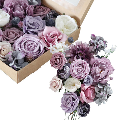 Simulation flowers in box flower head with rod DIY bouquet birthday valentine's day gift flower box