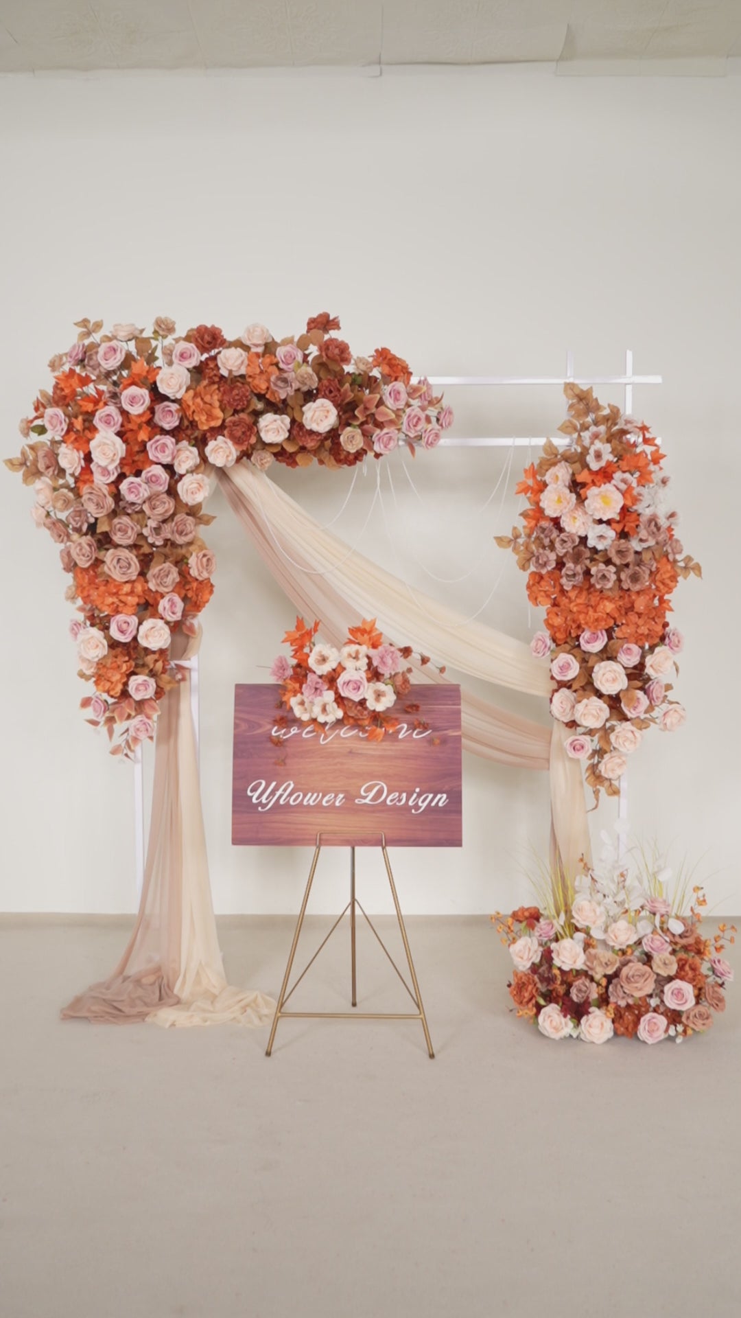 Uflower Artificial Autumn Pink Flower Row Wedding KT Backdrop Decor
