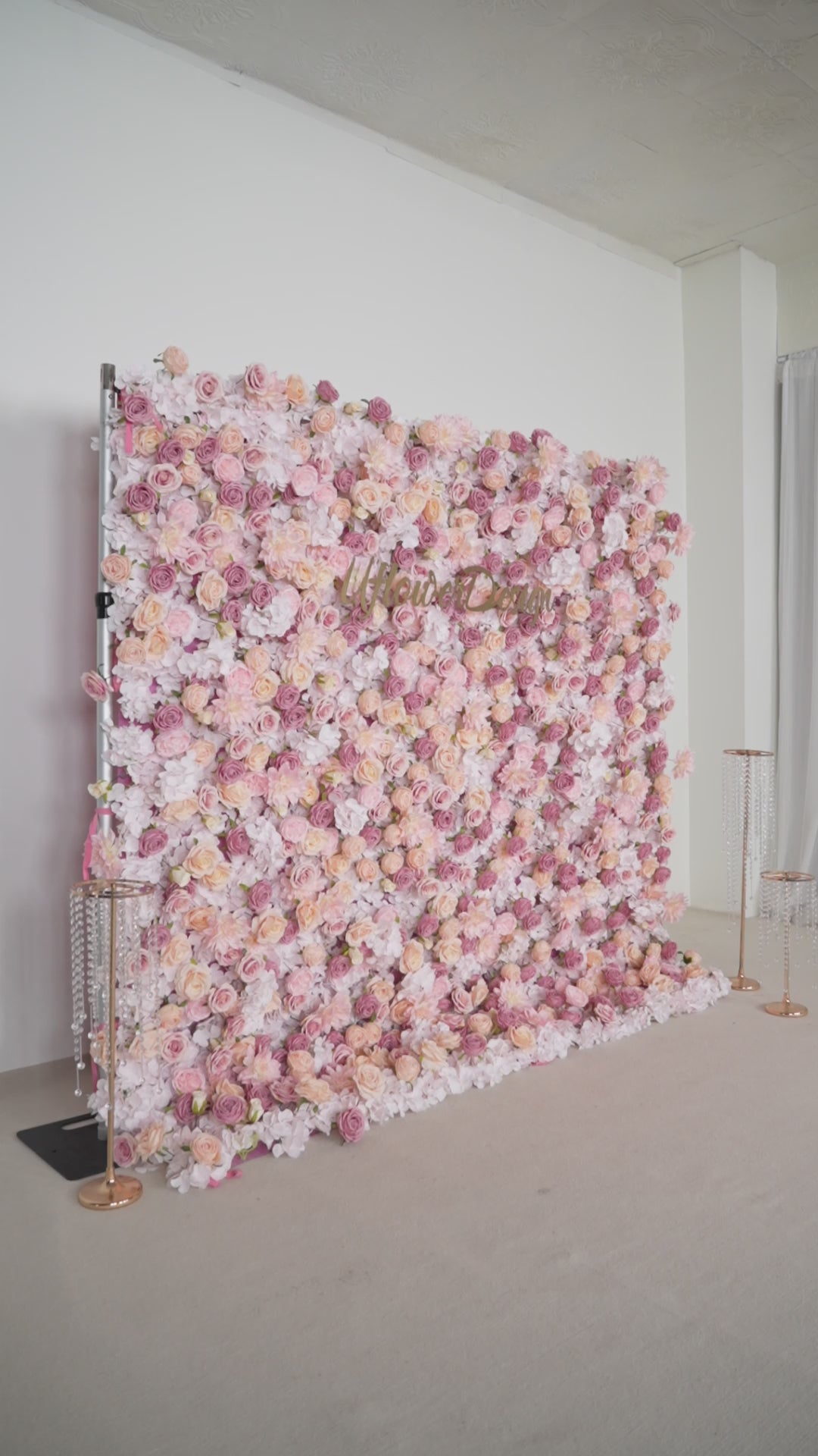 Uflower Artificial Pink Champagne Rose 5D Wedding Flower Wall
