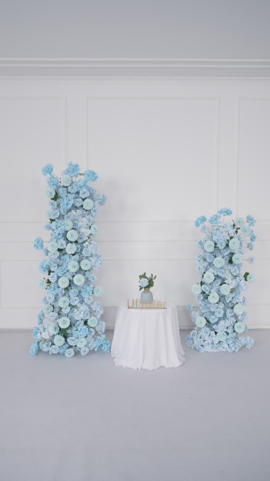 Uflower Blue Rose Orchid Pompoms Wedding Background Arch KT Board Decorative Flower