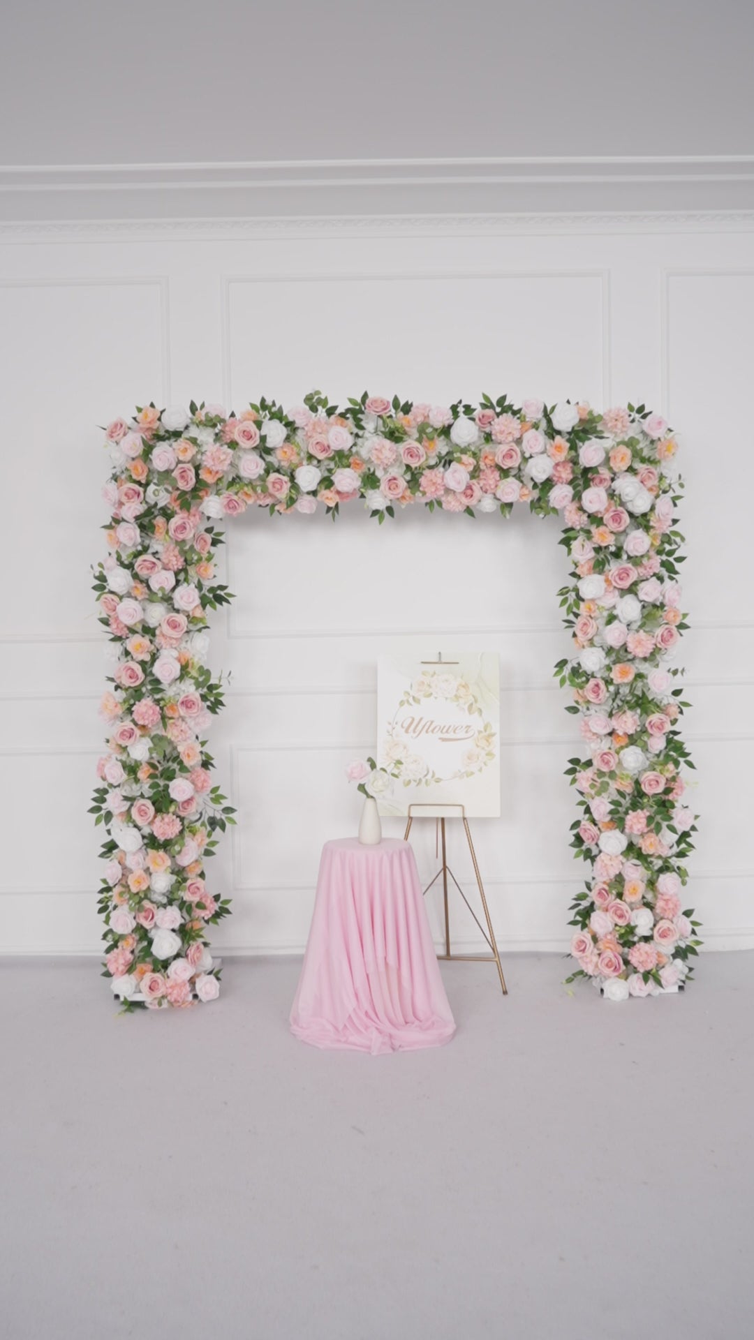 Uflower White Pink Rose Floral Square Arch Wedding Party Backdrop Decoration