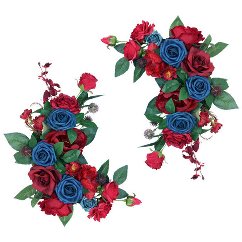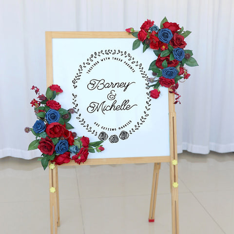 Wedding Arch Flower Imitation Wine Red Royal Blue Corner Flower Rose Welcome Sign Wedding Party