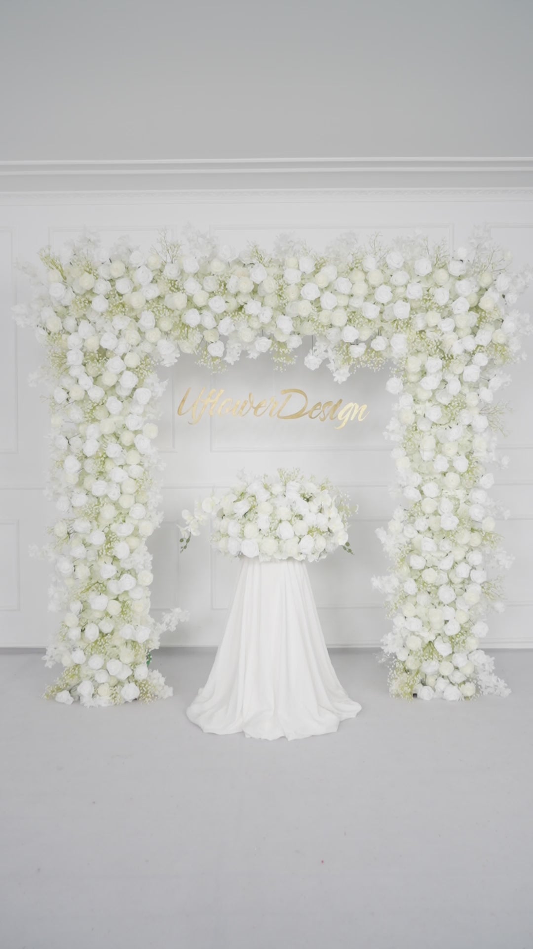 White Baby breath Rose Wedding Backdrop Arch Decor