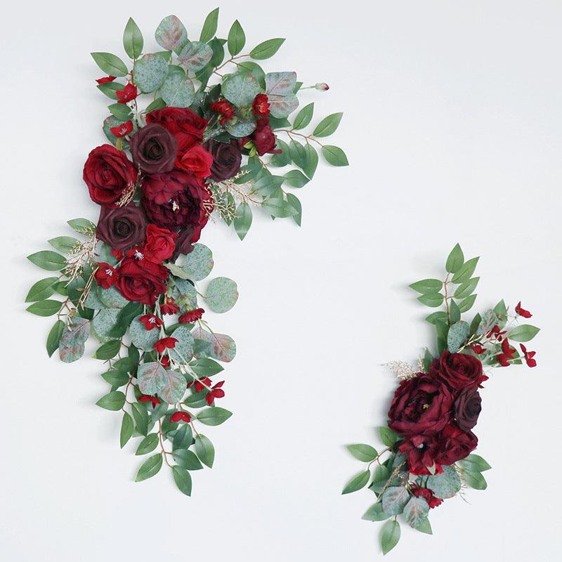 Burgundy Roses Wedding Arch Hanging Corner Floral Decor
