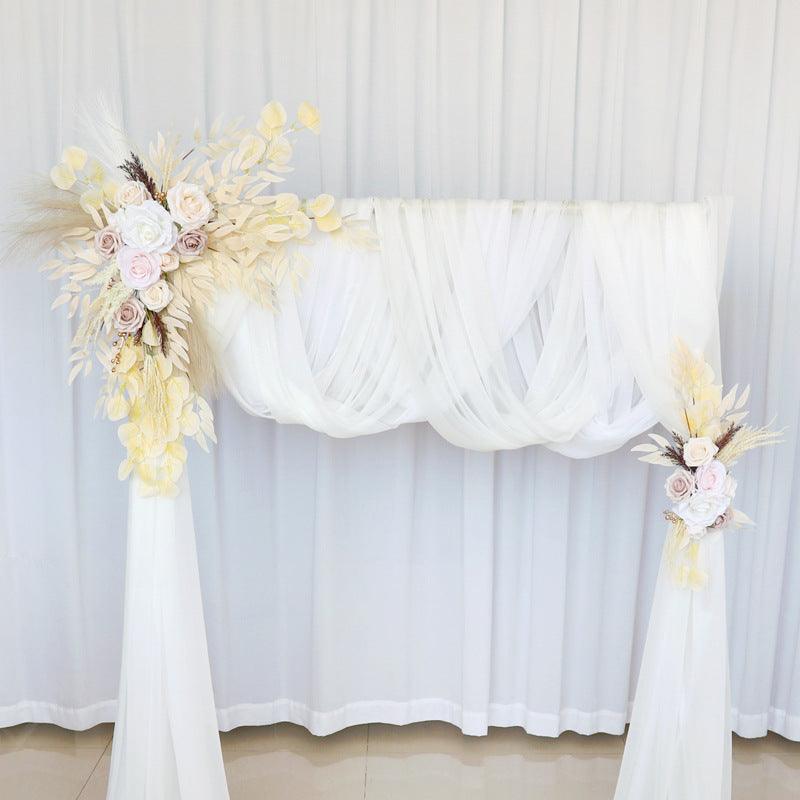 Simulated Arch Decoration Wedding Scene Welcome Sign Beige White Corner Flower Arrangement