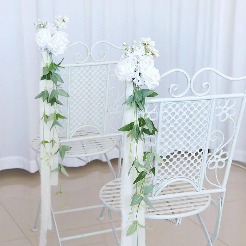 Simulated Huasen Series White Rose Vine Chair Back Flower Wedding Chair Back Flower Decoration