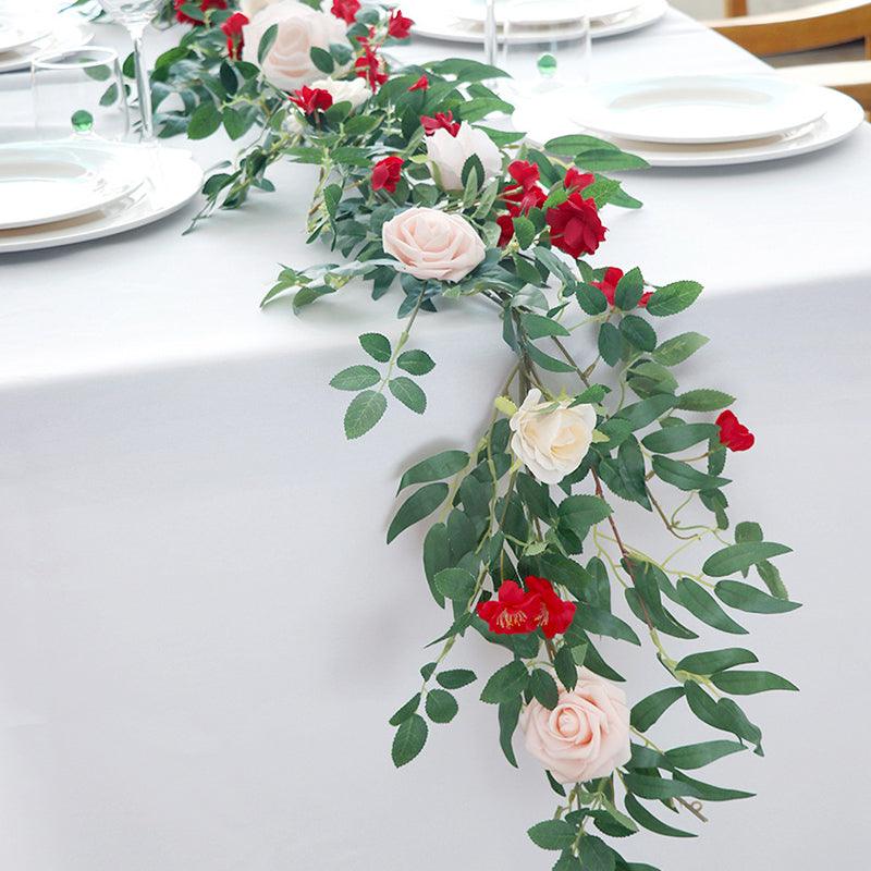 Wedding Red Pink Table Flower Decoration Vine Stage Background Decoration
