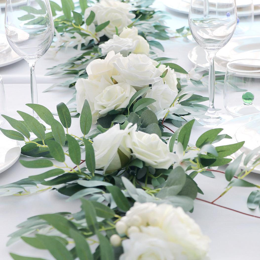 Wedding White Green Table Flower Decoration Vine Stage Background Decoration