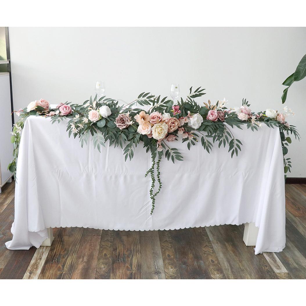 Long shallow lotus root powder white rose vine wedding simulation table flower decoration