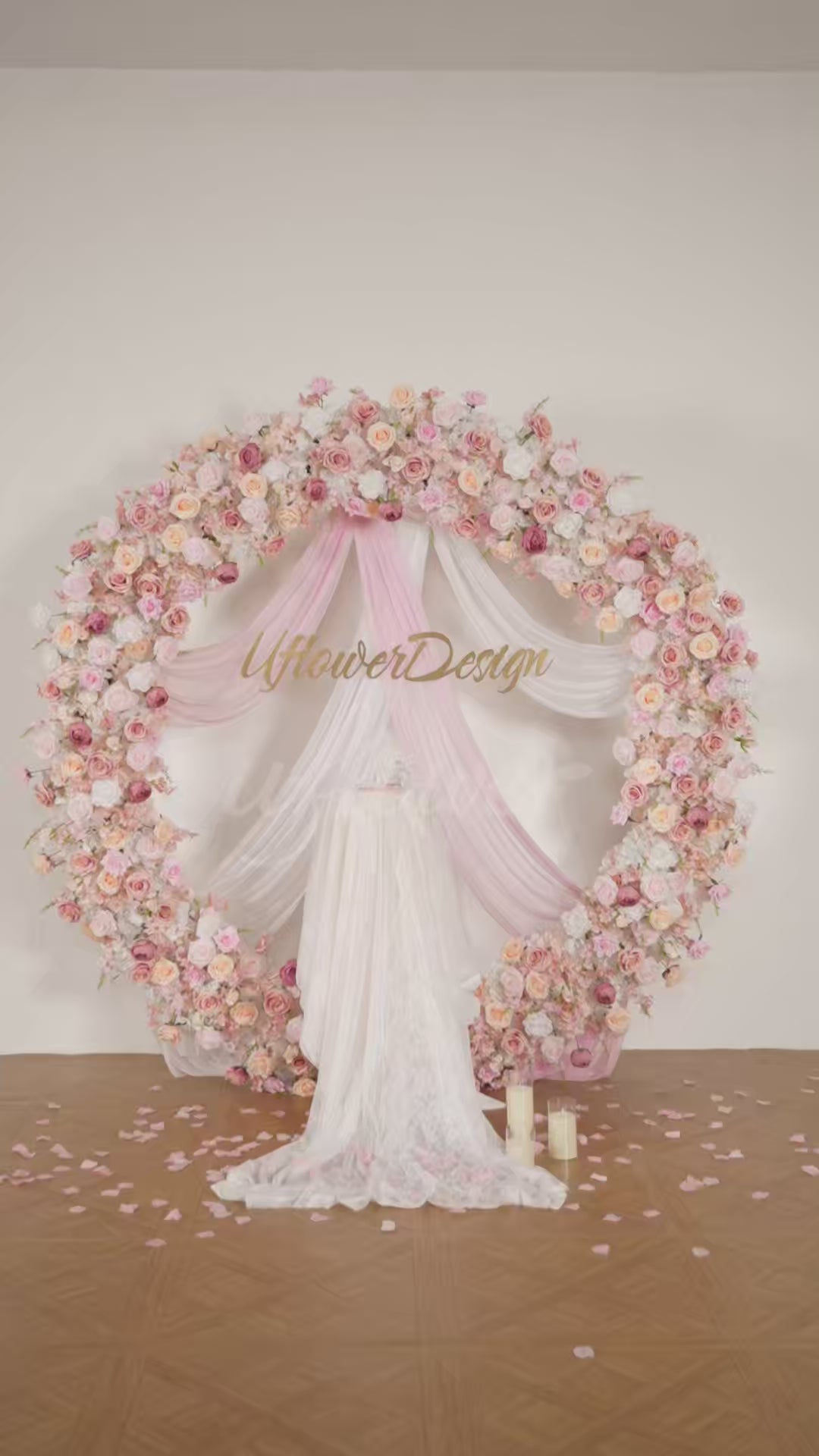 Uflower Pink White Rose Flower Arrangement Table Runner Wedding Round Arch SET80184 - Uflower