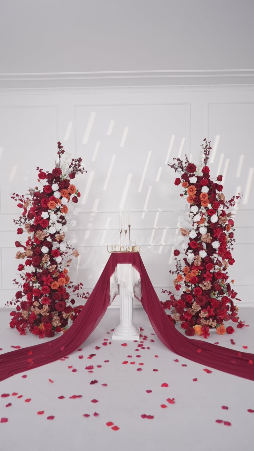 Uflower Autumn Red Rose Floral Horn Arch Wedding Party Backdrop Decor