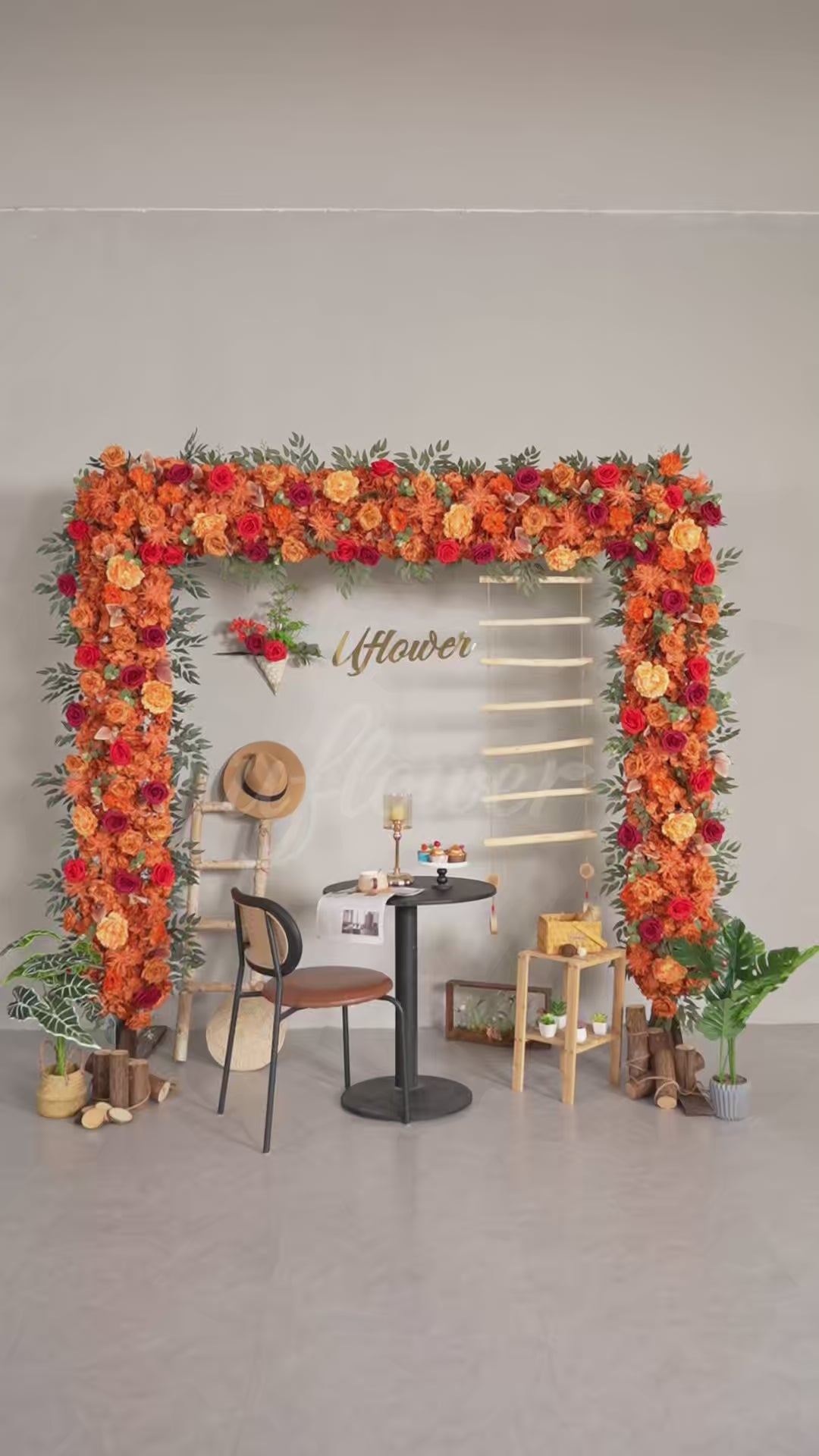 Uflower Orange Red Rose Floral Square Arch Wedding Party Ceremony Backdrop Decor