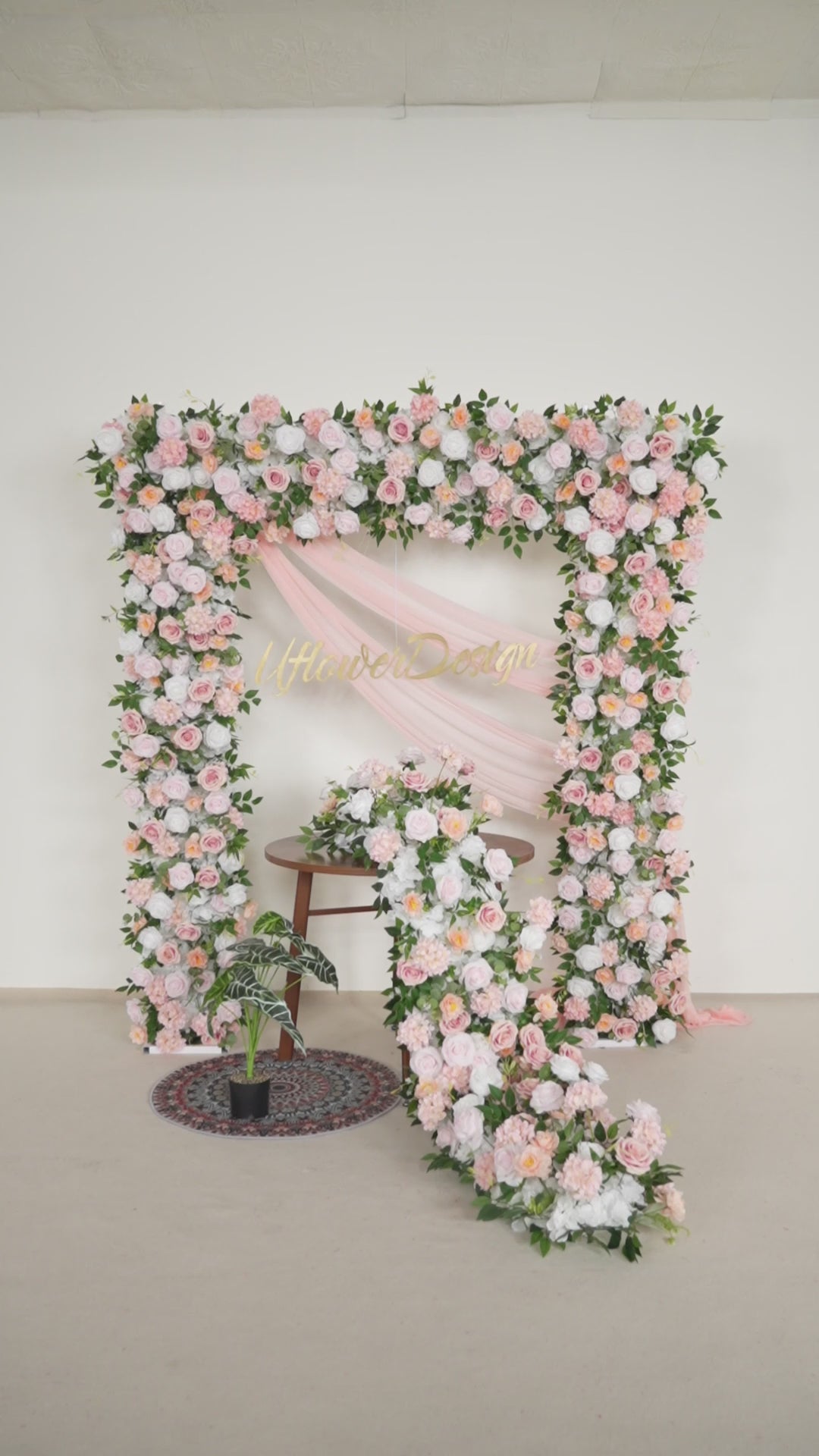 Uflower Pink White Rose Floral Square Arch Wedding Party Backdrop Decoration