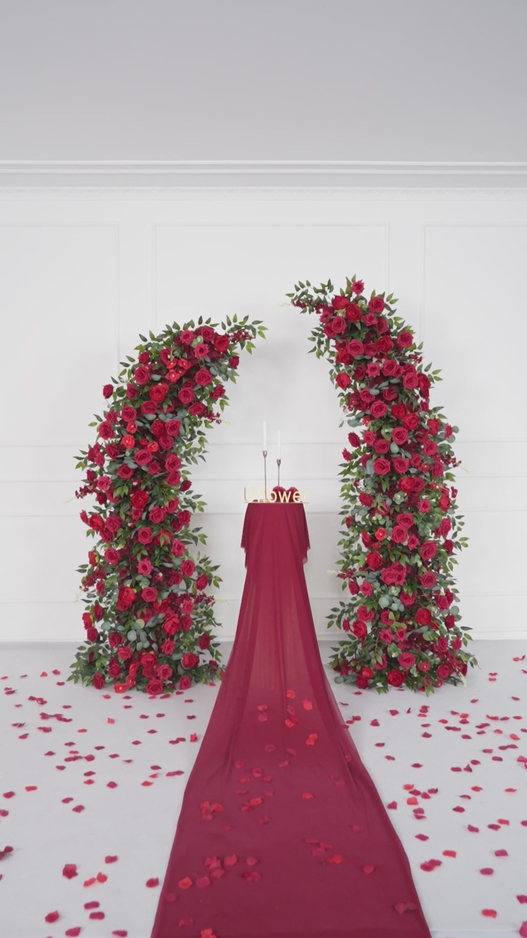 Uflower Red Rose Floral Arch Wedding Backdrop Decor