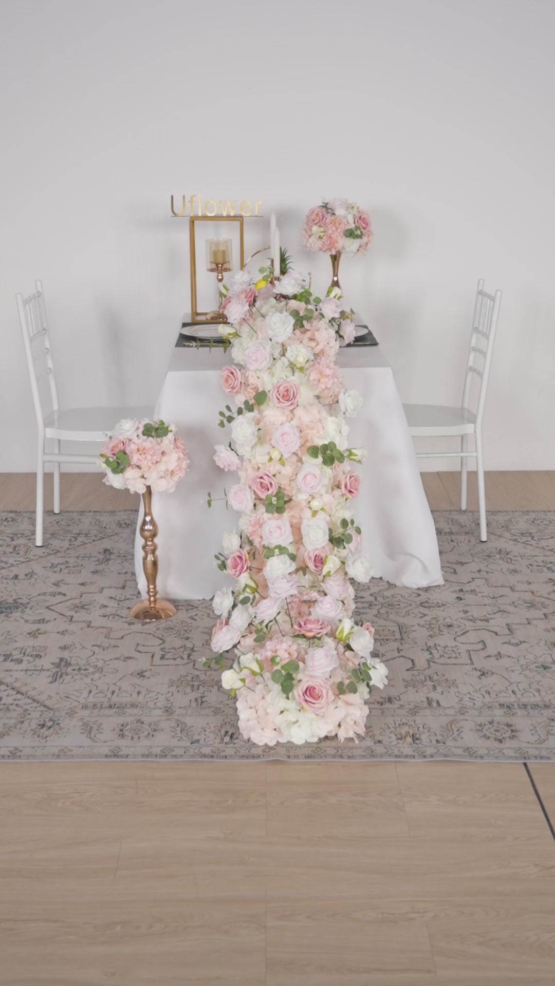 Uflower Wedding Backdrop Decor Flower Row Table Runner